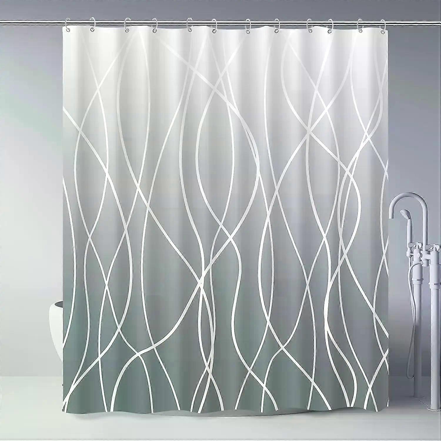 Modern Black and White Stripe Wavy Fabric Bathroom Shower Curtain, Gradient Stripes, Decorative Bathroom Shower Curtain,240x180cm-94x70in~01540