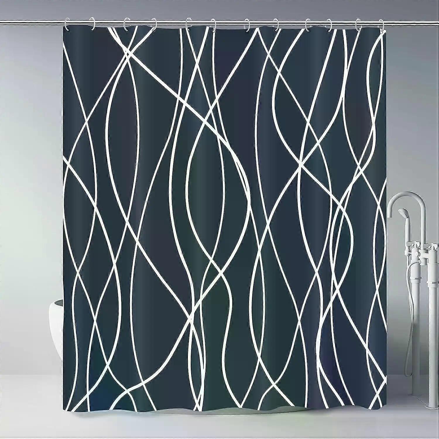 Modern Black and White Stripe Wavy Fabric Bathroom Shower Curtain, Gradient Stripes, Decorative Bathroom Shower Curtain,210x180cm-83x70in~01514