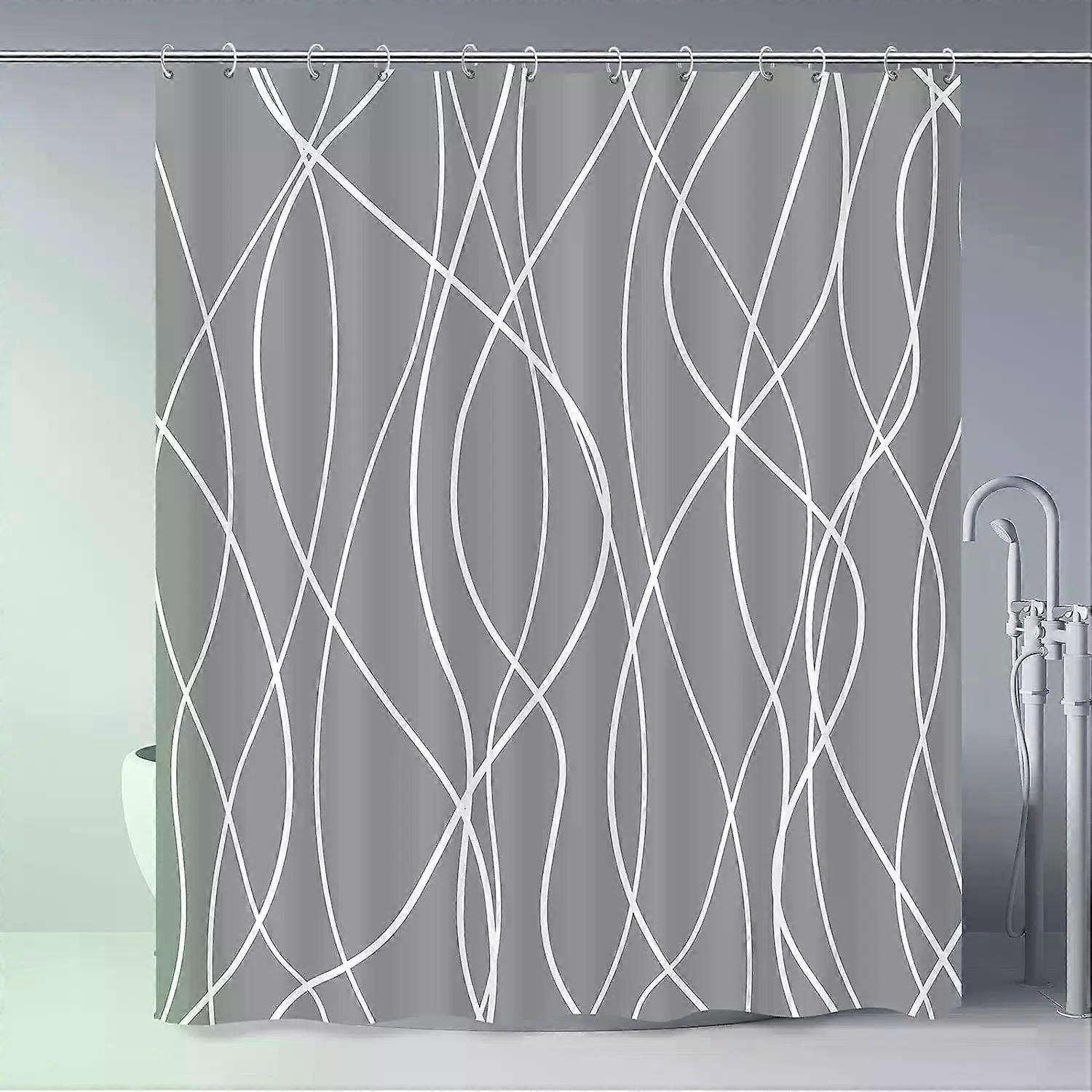 Modern Black and White Stripe Wavy Fabric Bathroom Shower Curtain, Gradient Stripes, Decorative Bathroom Shower Curtain,90x180cm-35x70in~01519