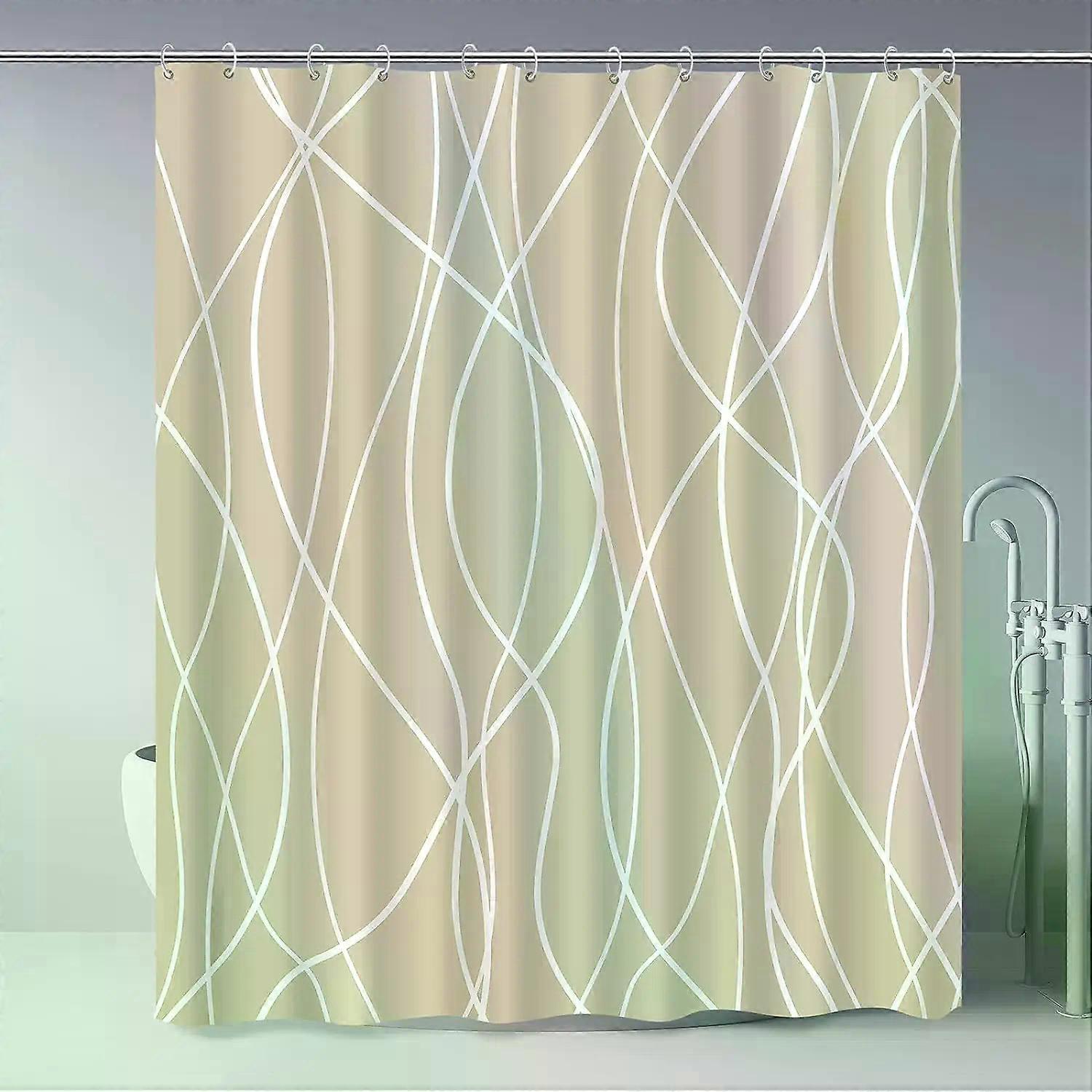 Modern Black and White Stripe Wavy Fabric Bathroom Shower Curtain, Gradient Stripes, Decorative Bathroom Shower Curtain,120x180cm-47x70in~01421