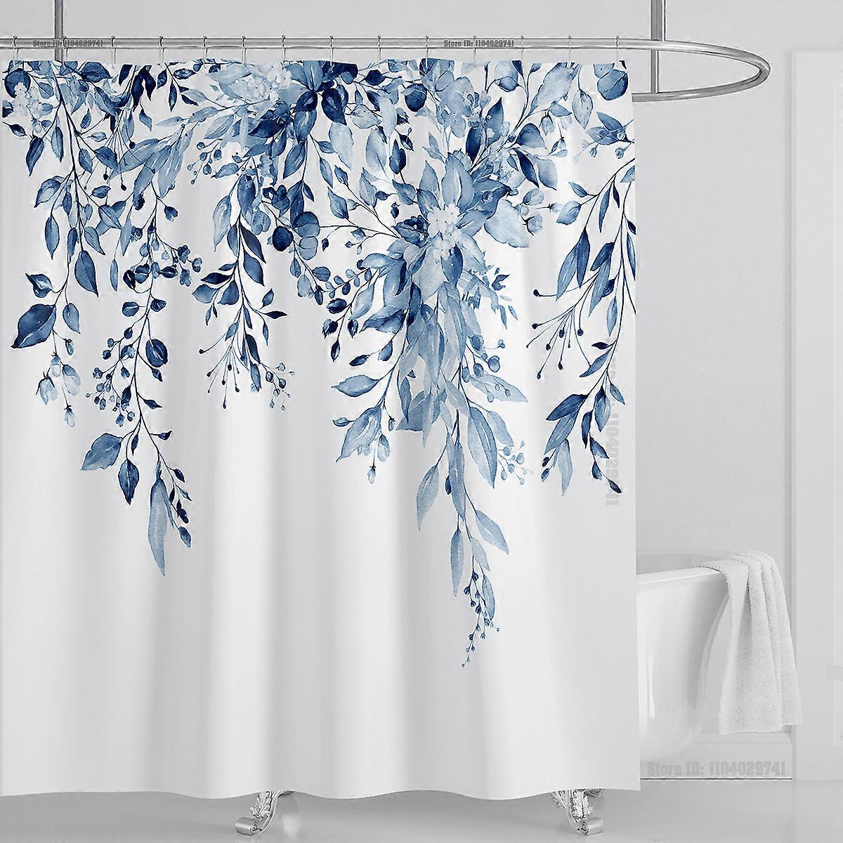 Emerald Green Eucalyptus Shower Curtain Fabric, Interconnecting Plant Leaves with Floral Shower Curtain Set with Hooks, W90xH180cm~01767