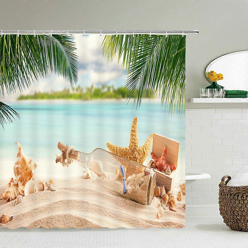 3D Beach Landscape Shower Curtains, Mediterranean Sea Ocean Bathroom Curtain, Waterproof Fabric Decor, Bath Curtain,W90xH180cm~01199