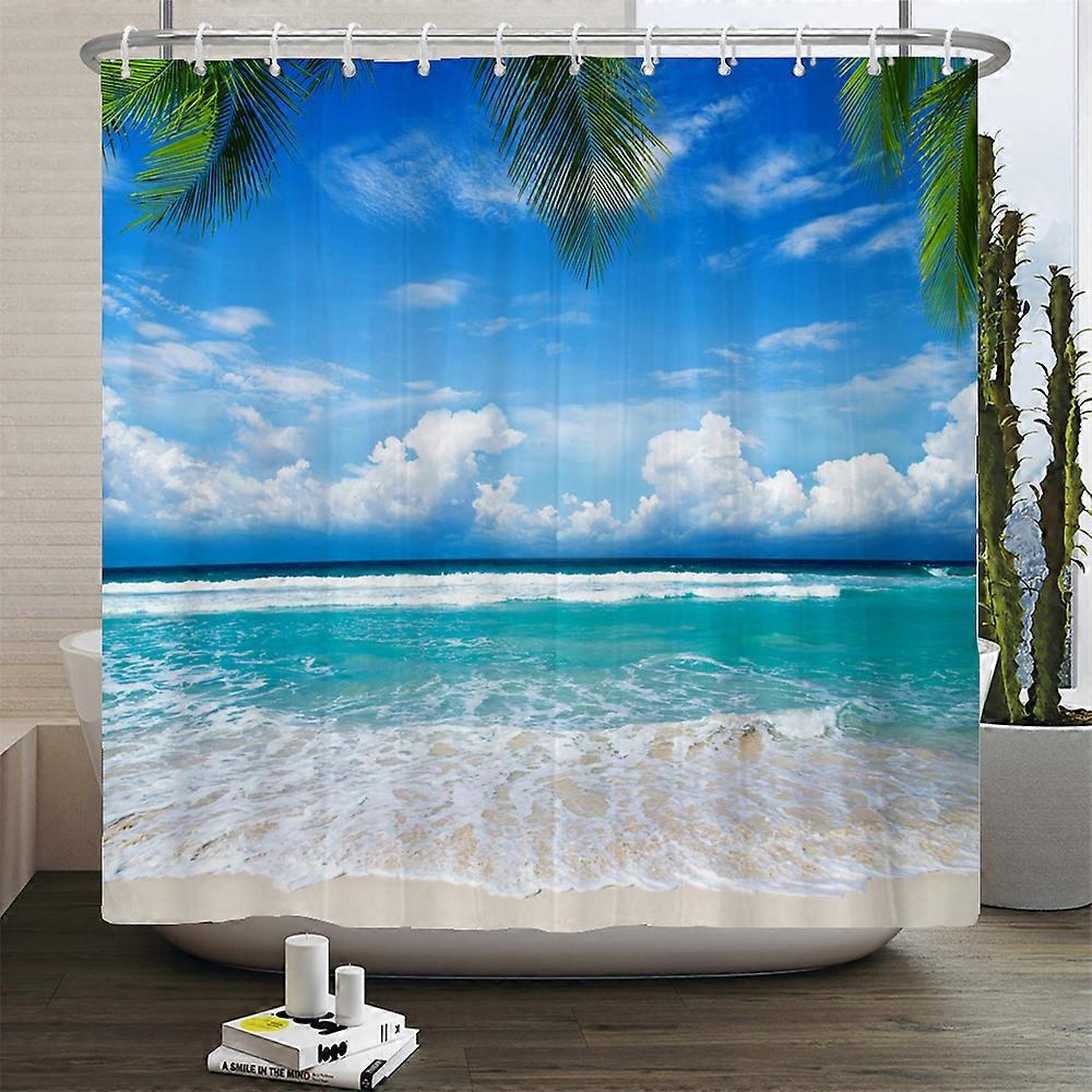 3D Beach Landscape Shower Curtains, Mediterranean Sea Ocean Bathroom Curtain, Waterproof Fabric Decor, Bath Curtain,W210xH180cm~01283