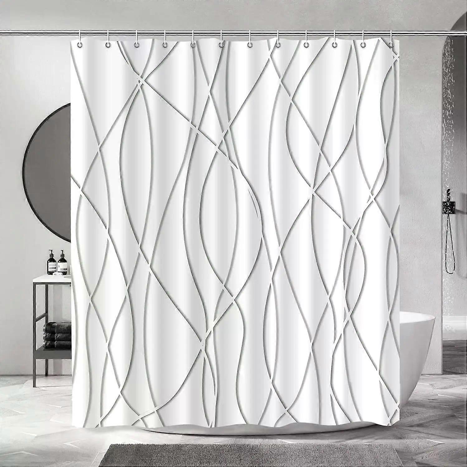 Modern Black and White Stripe Wavy Fabric Bathroom Shower Curtain, Gradient Stripes, Decorative Bathroom Shower Curtain,200x180cm-78x70in~01414