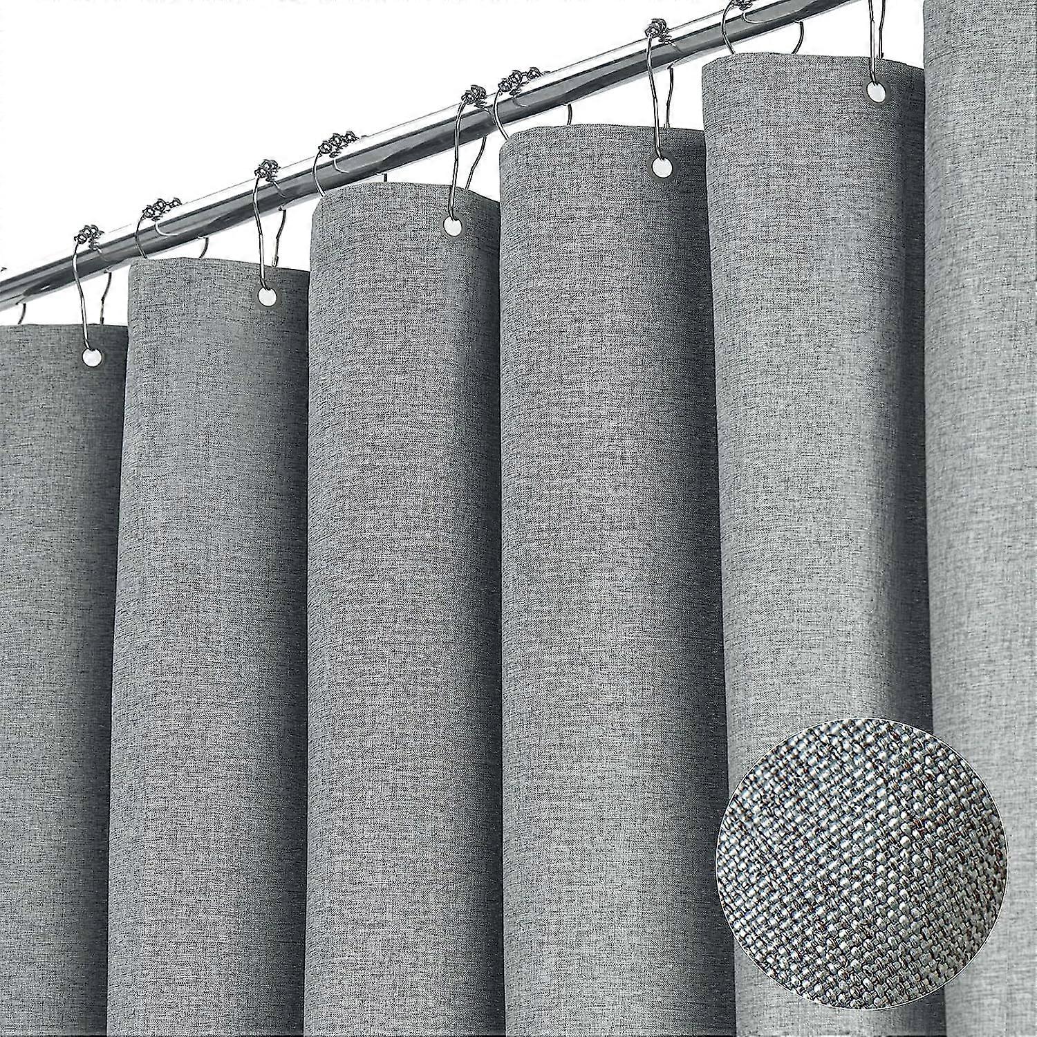 Luxury Linen Shower Curtain with Silver Metal Hooks, Waterproof Optical Fabric, Large Bath Cover for Bathtub, W80xH180cm~00934
