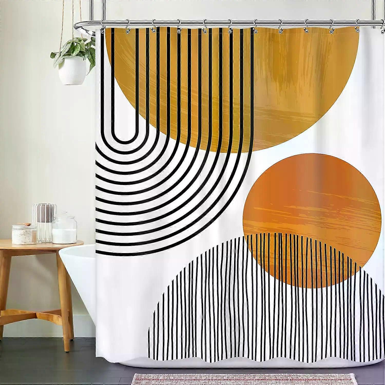 Bohemian Shower Curtain Abstract Medieval Arch Sun Leaf Aesthetic Line Minimalist Modern Geometric Decorative Shower Curtain,70x70in-180x180cm~00457