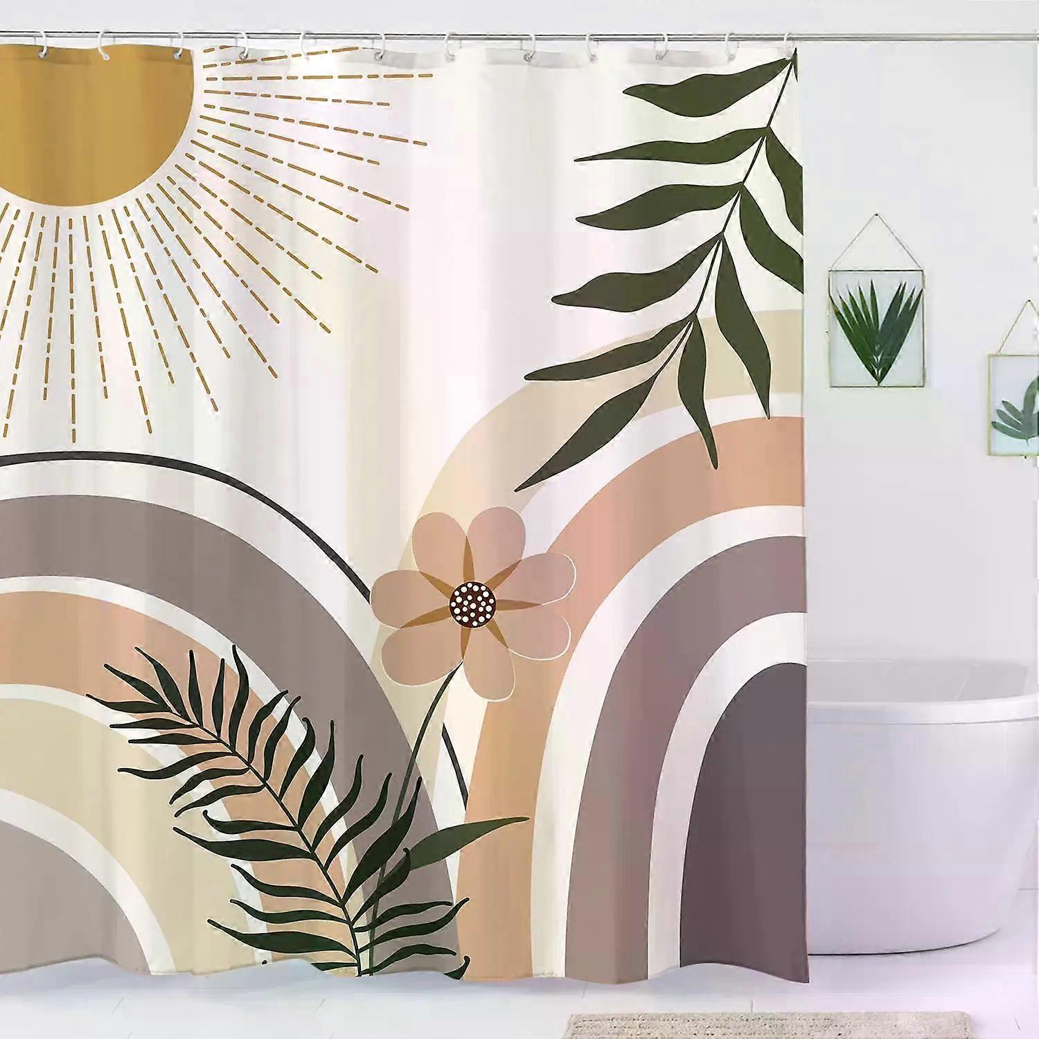 Bohemian Shower Curtain Abstract Medieval Arch Sun Leaf Line Aesthetic Minimalist Modern Geometric Decorative Shower Curtain,83x70in-210x180cm~00477