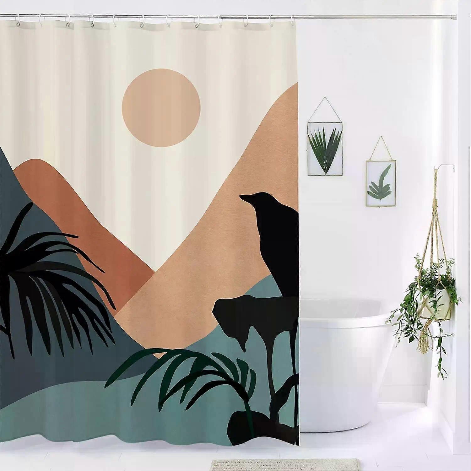 Bohemian Shower Curtain Abstract Medieval Arch Sun Leaf Line Aesthetic Minimalist Modern Geometric Decorative Shower Curtain,70x83in-180x210cm~00362
