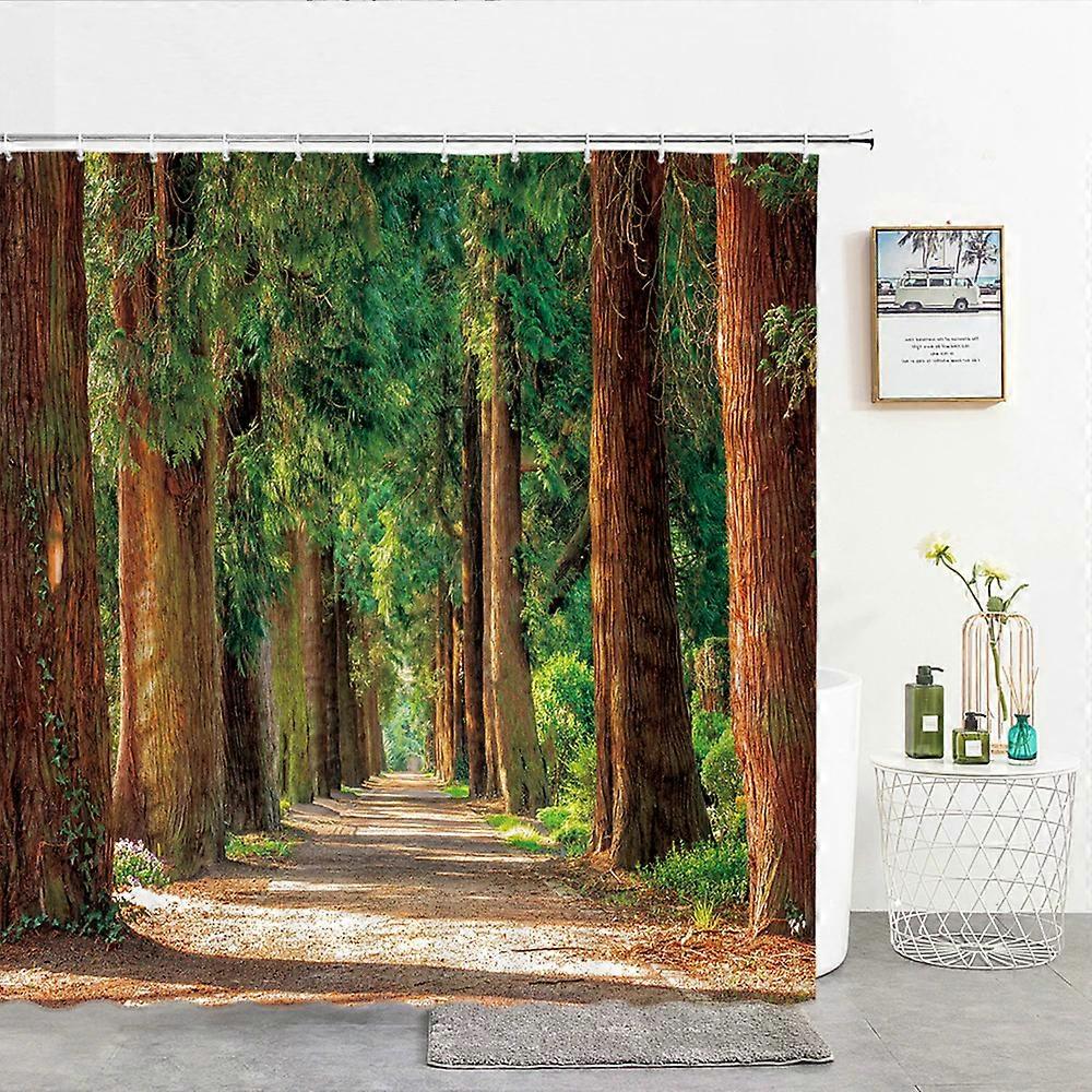 3D Print Bath Curtain Window Landscape Forest Shower Curtains 180*200cm Waterproof Bathroom Curtain Washable Fabric with Hooks,W150xH180cm~00228