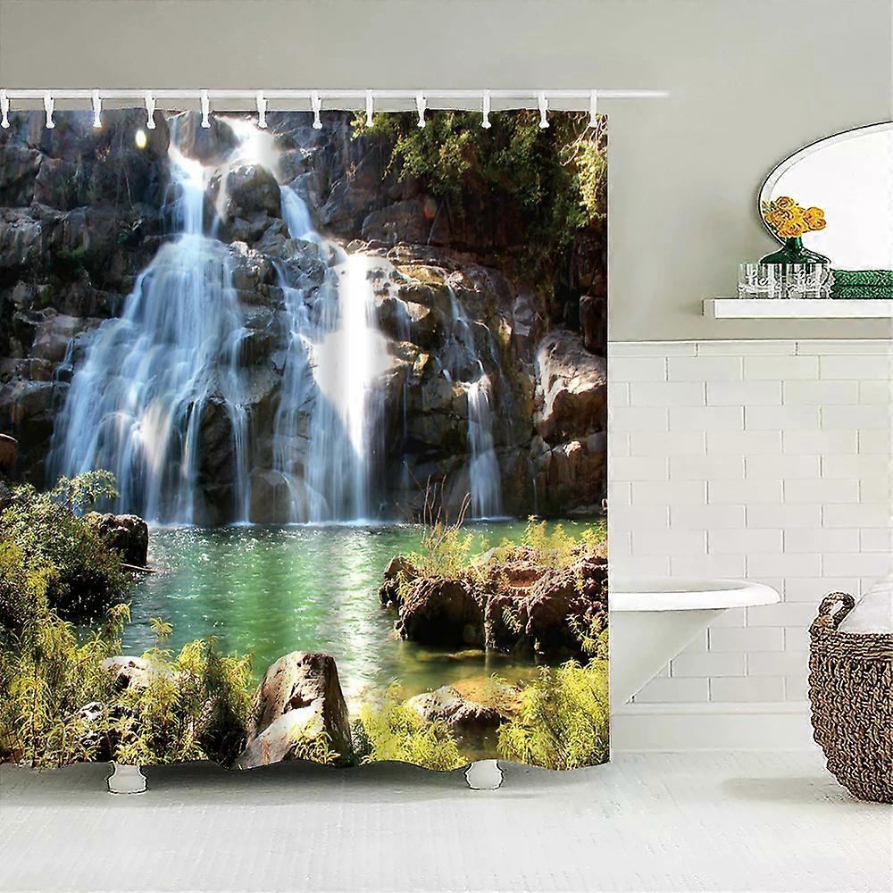 3D Print Bath Curtain Window Landscape Forest Shower Curtains 180*200cm Waterproof Bathroom Curtain Washable Fabric with Hooks,W300xH180cm~00138
