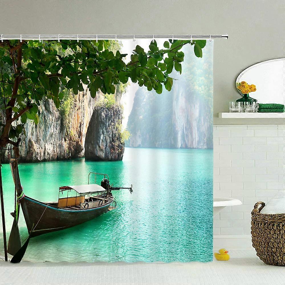 3D Print Bath Curtain Window Landscape Forest Shower Curtains 180*200cm Waterproof Bathroom Curtain Washable Fabric with Hooks,W300xH180cm~00174
