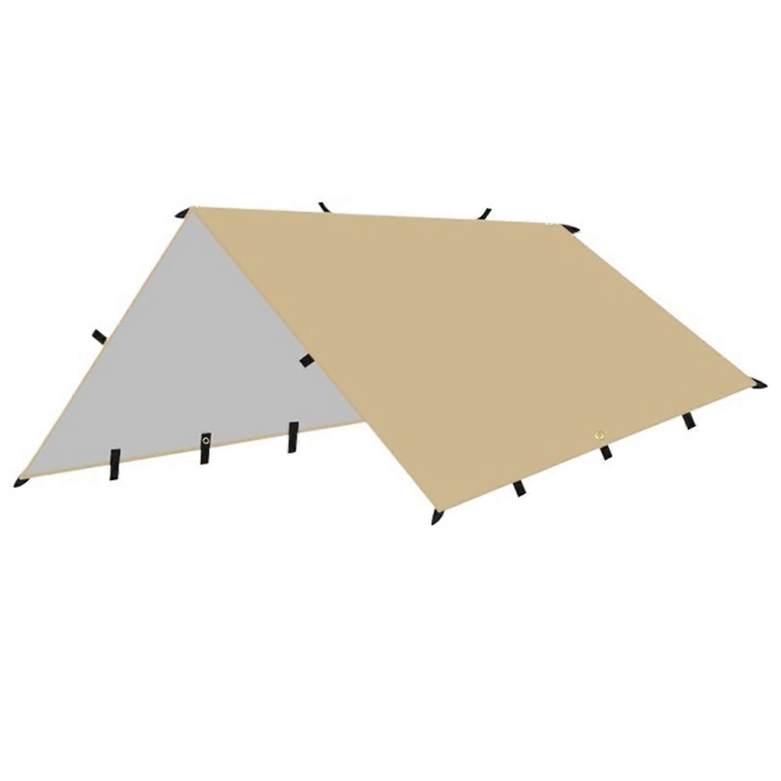 Awning Hang Points Tent Tarpaulin 4x4m Khaki Waterproof Sun Shelter Canopy for Outdoor Backpacking Camping