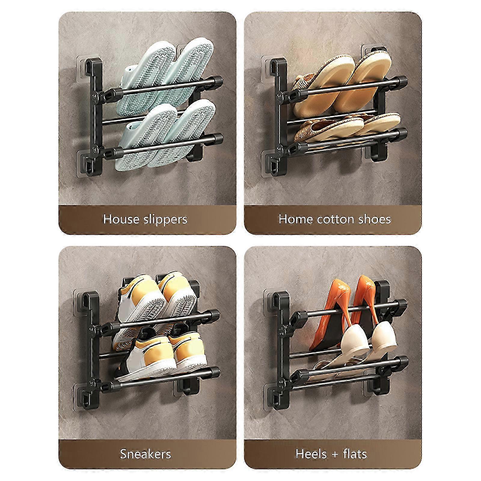 Portable Foldable 2-Tier Wall Shoe Rack compatible with European Homes, No Drill Needed, 50CM