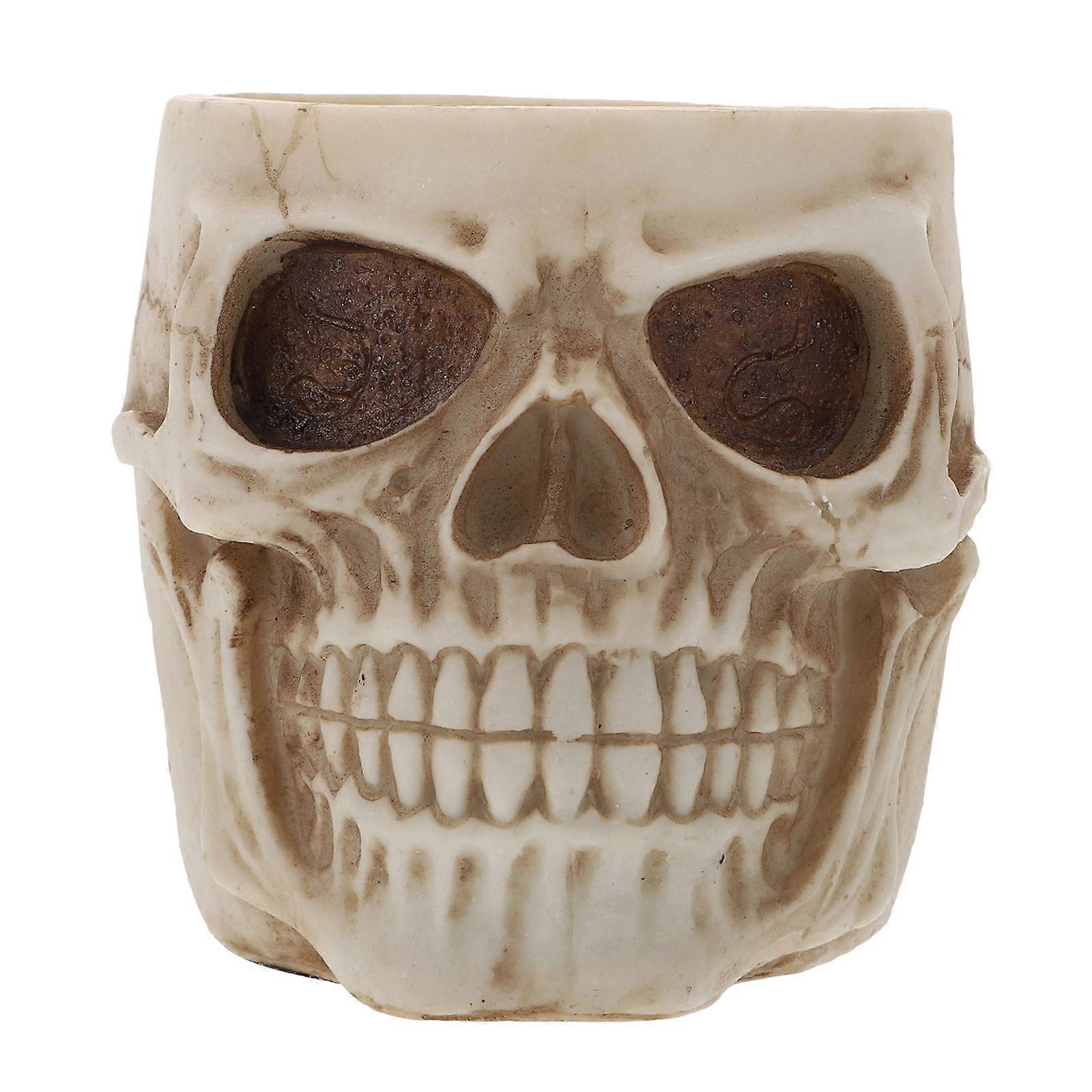 Unique Pen Holder Resin Three-Dimensional Skull Desktop Accessories Office Use Beige 9X8X8CM Pen Storage 1Pack