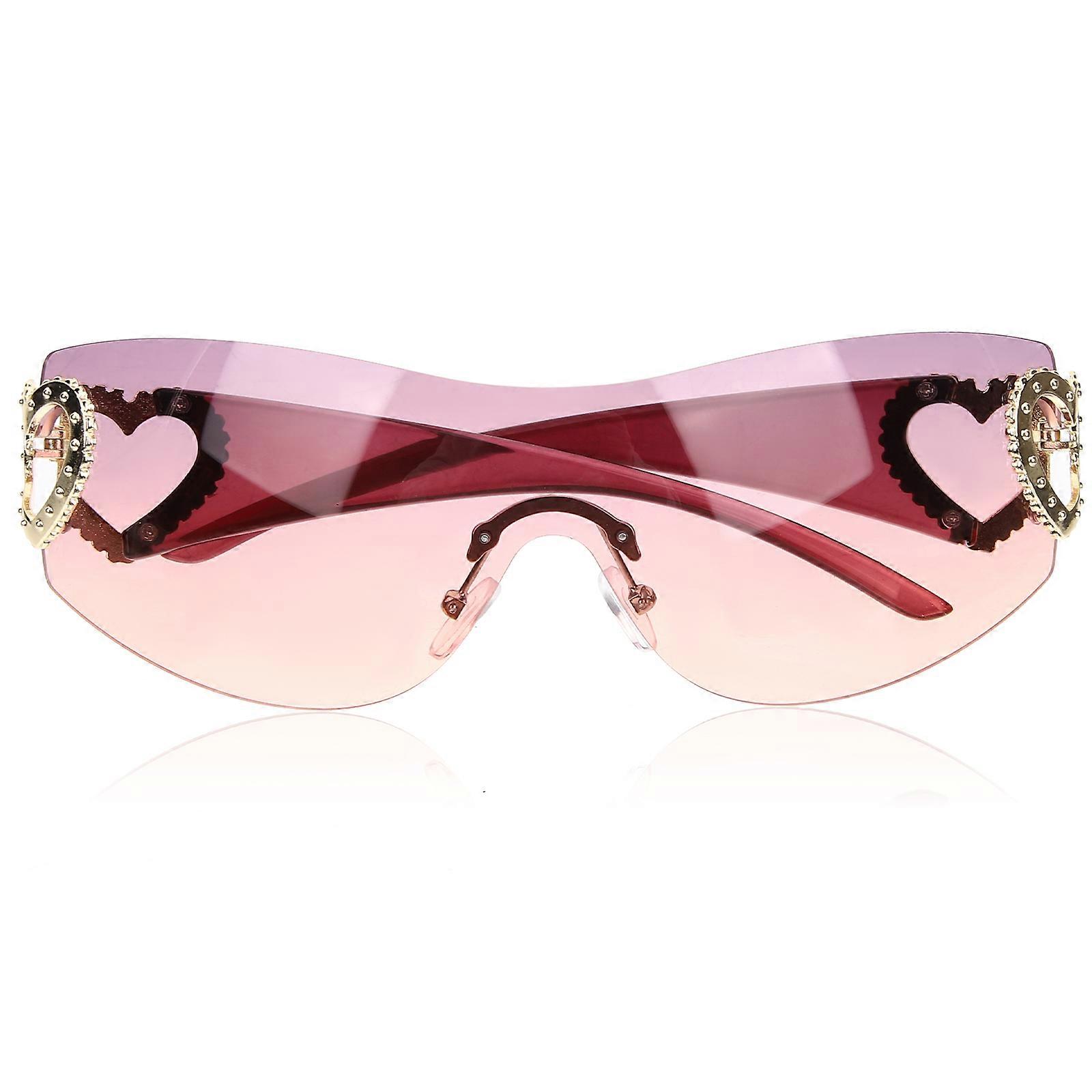 Fun Sunglasses Women Rimless Eyewear Purple UV Protection Anti-Glare Reduce Eye Fatigue Heart-Shaped Style 1Set