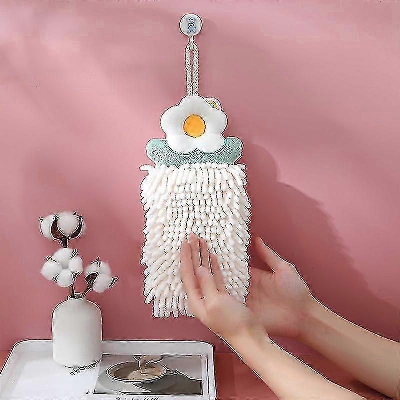 (White) Hangable Chenille Floral Children's Towel, Hand Towel, Absorbent Quick Dry Microfibre Towel Bath Towel with Hanging Loop Kitchen & Bathroo-M