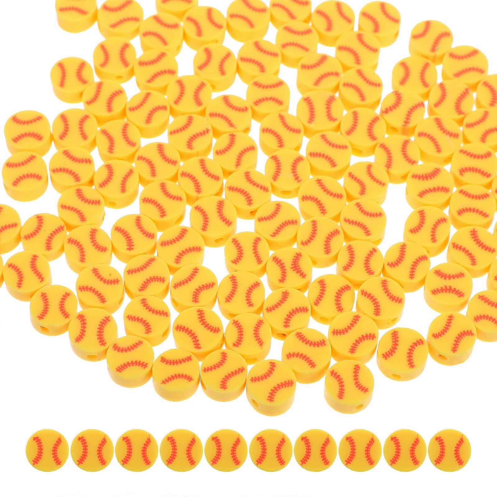 Softball Yellow Baseball Polymer Clay Beads for Jewelry Making 100Pcs