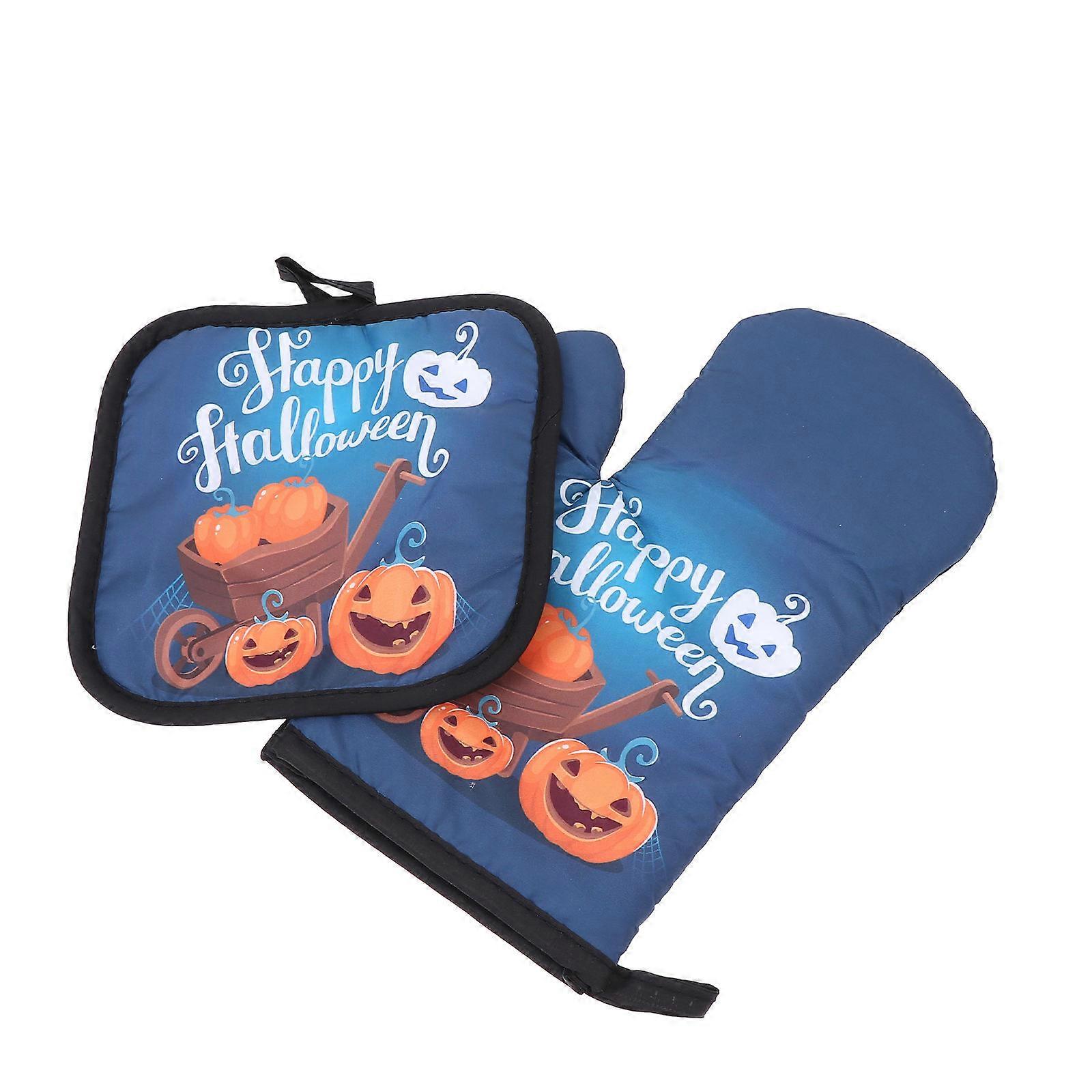 Halloween Heat Resistant Oven Gloves Non Slip Baking Mitts Pumpkin Design Microwave BBQ Hand Washable Easy Storage