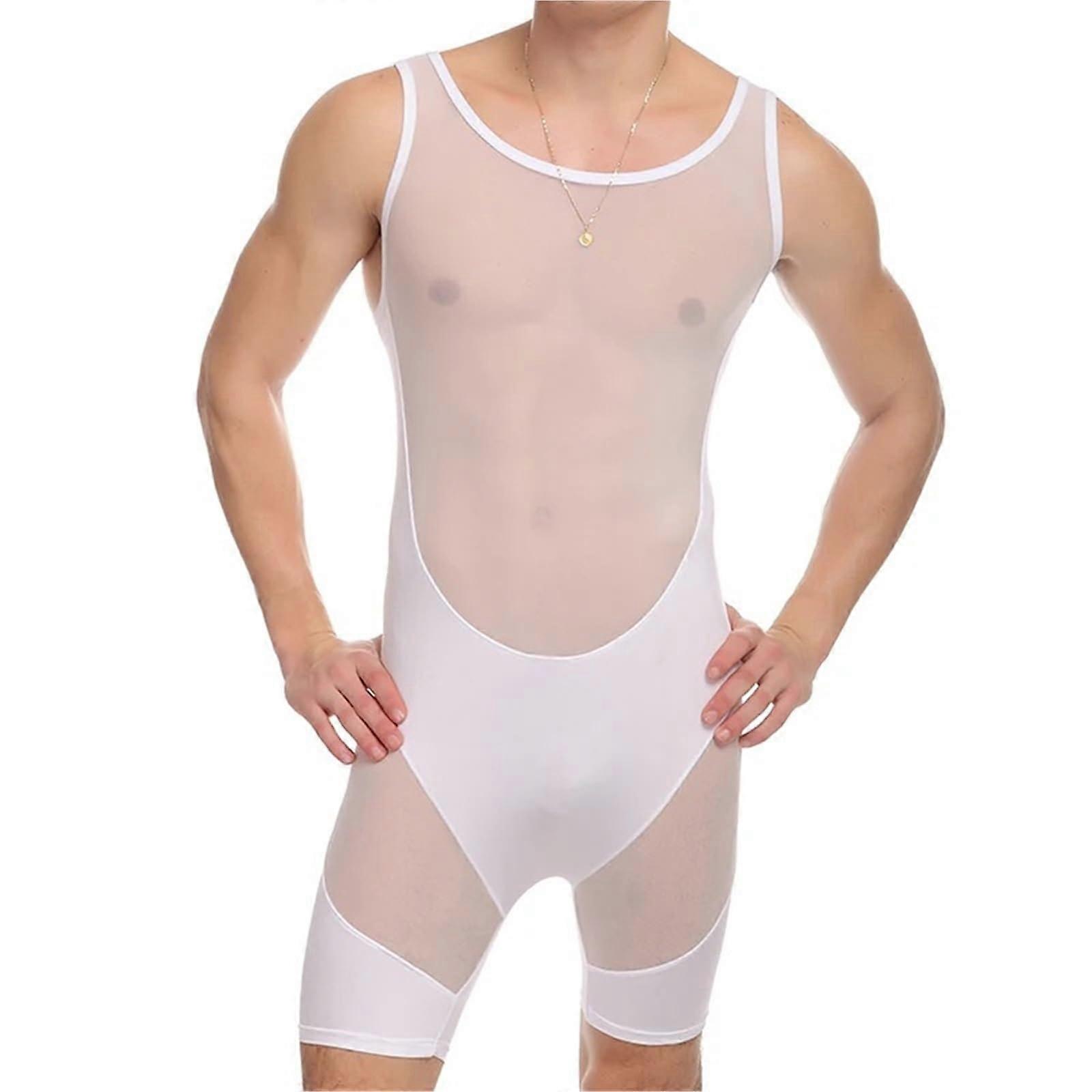 Men's Bodysuits Wrestling Singlet White XL Fitness Leotard Jumpsuit Bodywear Underwear