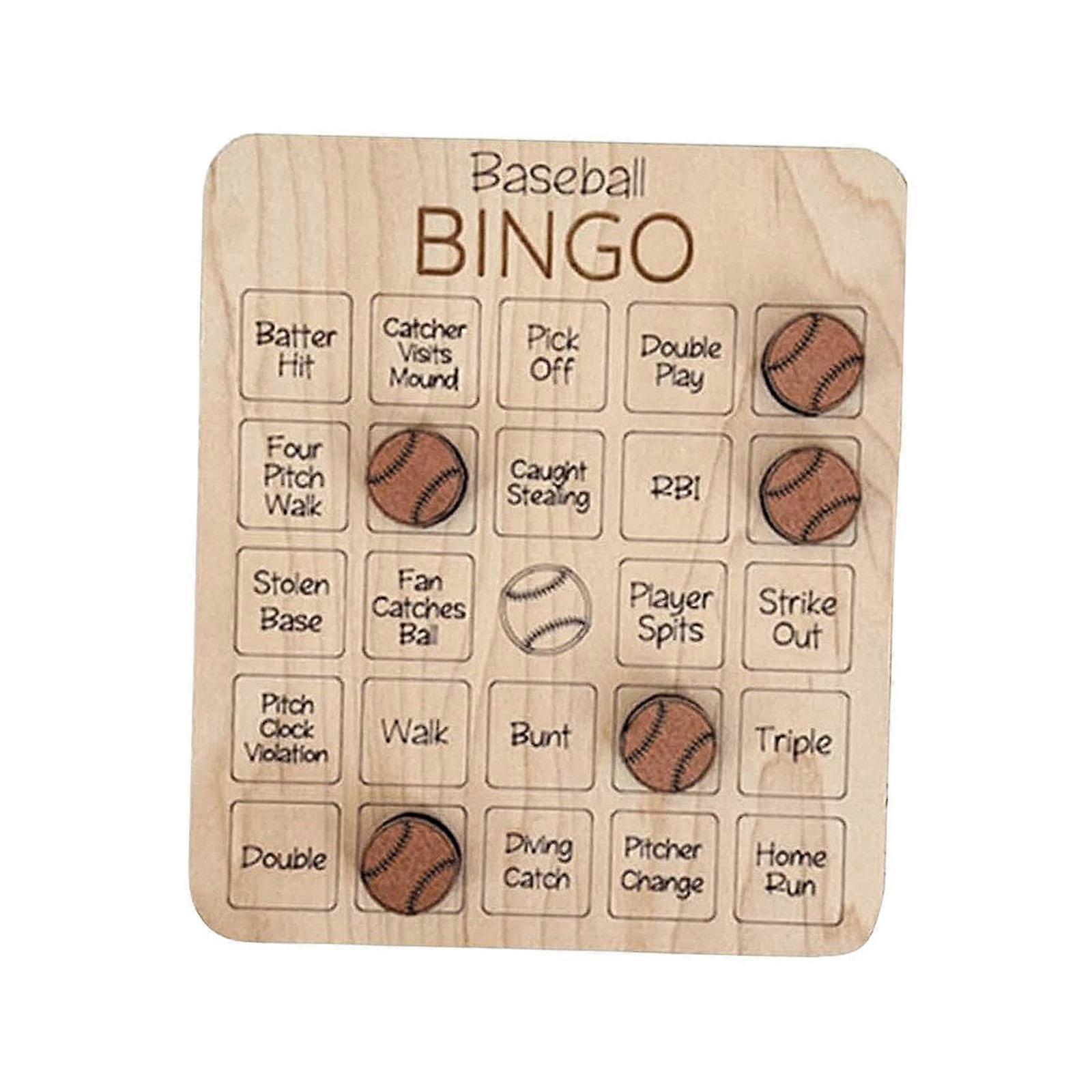 Bingo Cards For Sports And Family Games, Wooden Baseball Bingo Activity Set