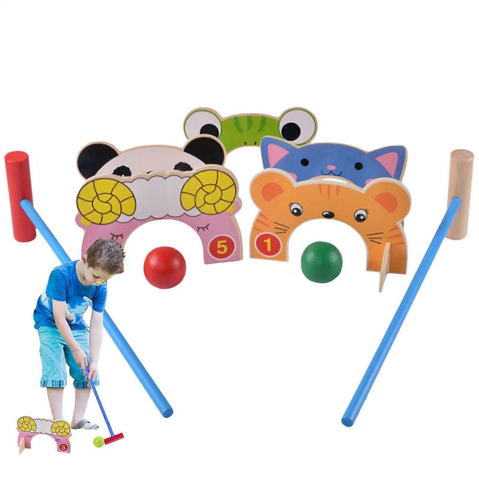Children's Croquet Set - Wooden Croquet Set, Animal Themed Croquet Set, Lightweight Outdoor Croquet Set, Bright Colours
