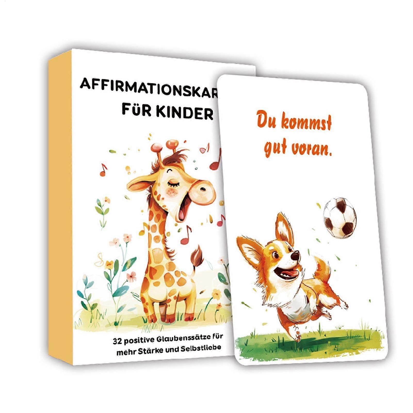 Affirmation Cards 32 German Language Positive Flash Cards, Animal Theme, 4.72 x 3.15 x 0.04 Inches For Mindfulness