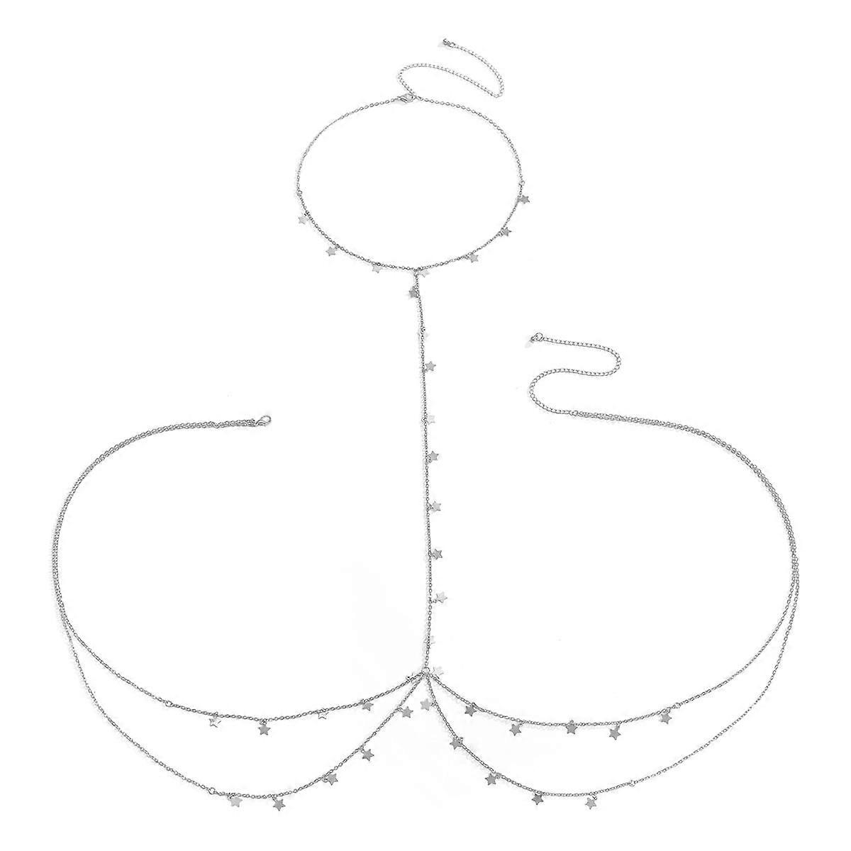 Rhinestone Bra Chain Silver Crystal Body Jewellery For Women Beach Bikini Chest And Waist Chain Festival Accessory