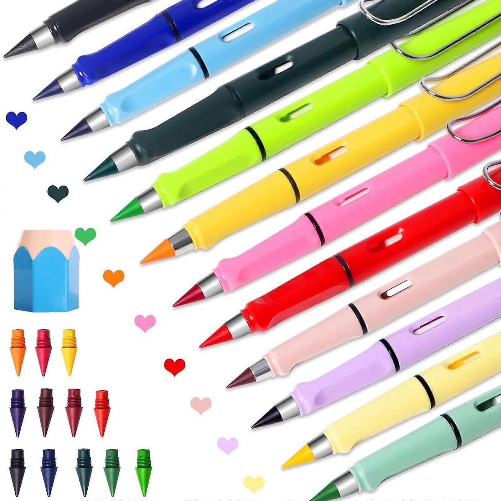 Magic Pencil Pen Set - 12 Magic Pencils, 12 Vibrant Colours, Metal Clip, Ballpoint Refills For Office And School