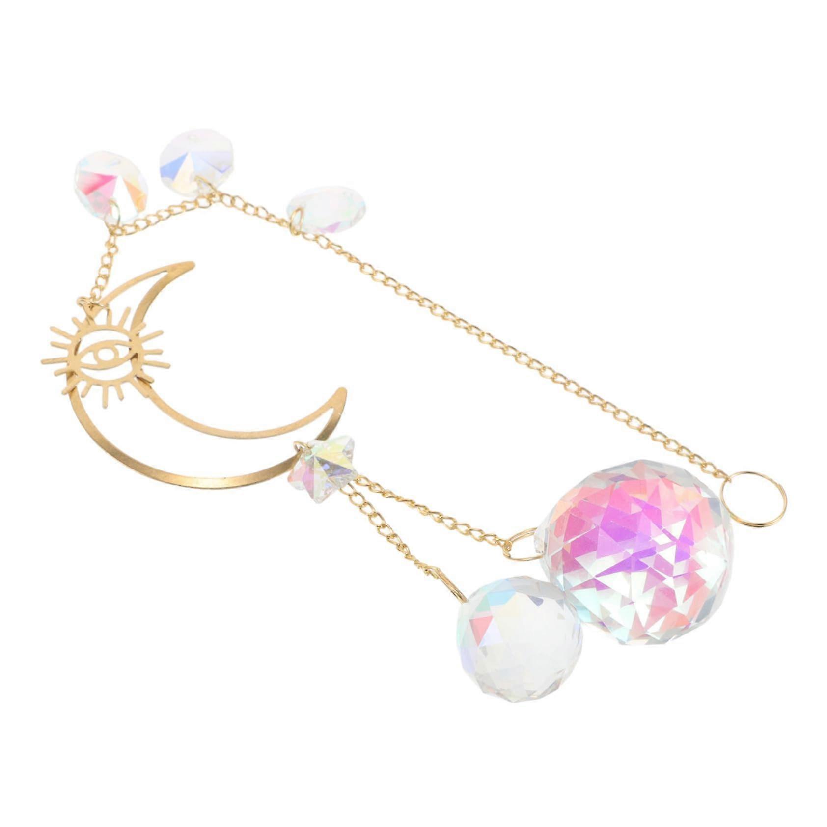 Crystal Pendant Hanging Crystals for Window Decoration, Metal Golden Moon and Sun Catcher, Wall and Door Decor