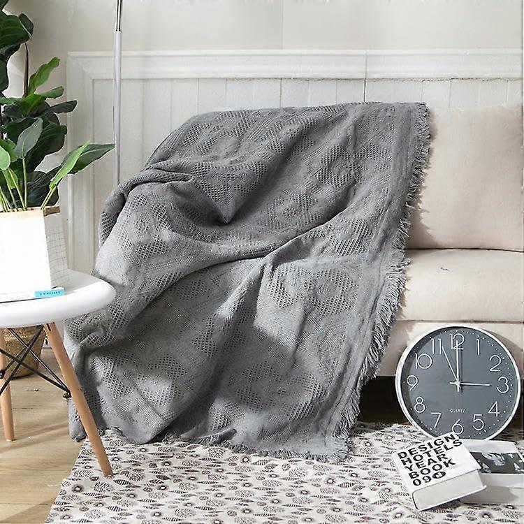 Gray Cotton Picnic Blanket 90-340 cm Boho Outdoor Mat 130x260 cm Soft Beach Throw with Tassels Gray Diamond Design