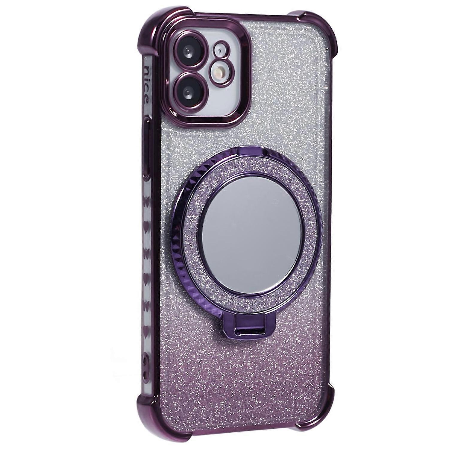 h2U For iPhone 12 Case TPU Mirror Phone Cover Kickstand Glitter Y3M - Dark Purple