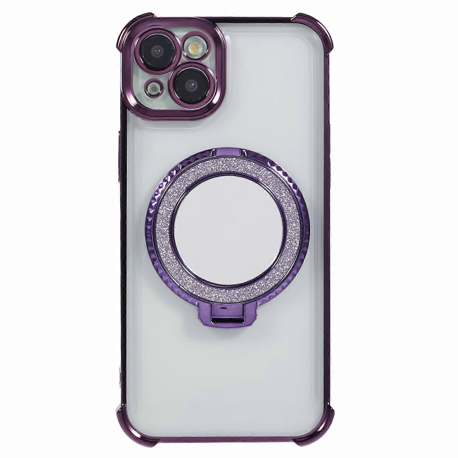 z3f For iPhone 15 Side Heart Pattern Case Kickstand TPU Phone Cover I3I with Mirror - Dark Purple