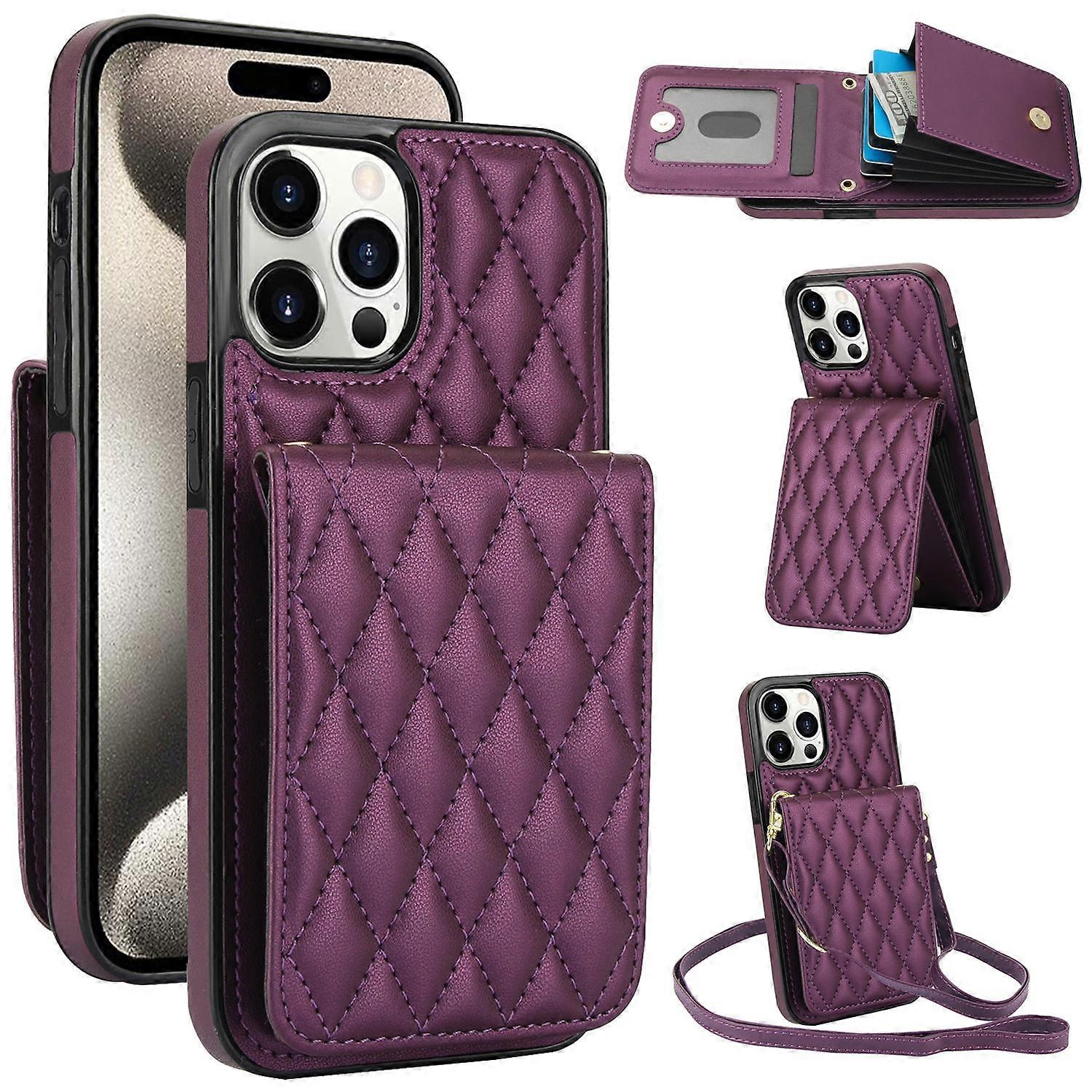 •Constructed with TPU material coated with PU leather, scratch-resistant, and anti-fingerprint •The stitching line forms rhombus grid pattern, which is fashionable and beautiful •The raised edge of the camera and screen can effectively protect against scratches •Precise cutouts, full access to all of the buttons, ports, and other features •The back of the case is designed with a card holder, easy to carry your essential cards, and can be used as a kickstand for hands-free use •The card slot is supported by advanced RFID blocking technology to block signals and protect your personal information from theft effectively •The magnetic snap button closure can keep the cards safe in the card holder pouch •Protect the phone from scratch, impact, drop, and other daily damage •Comes with a shoulder strap, which is convenient for carrying your phone out Compatible with: •iPhone 15 Pro Package included: •1 x Phone Case •1 x Shoulder Strap •Other items not included
