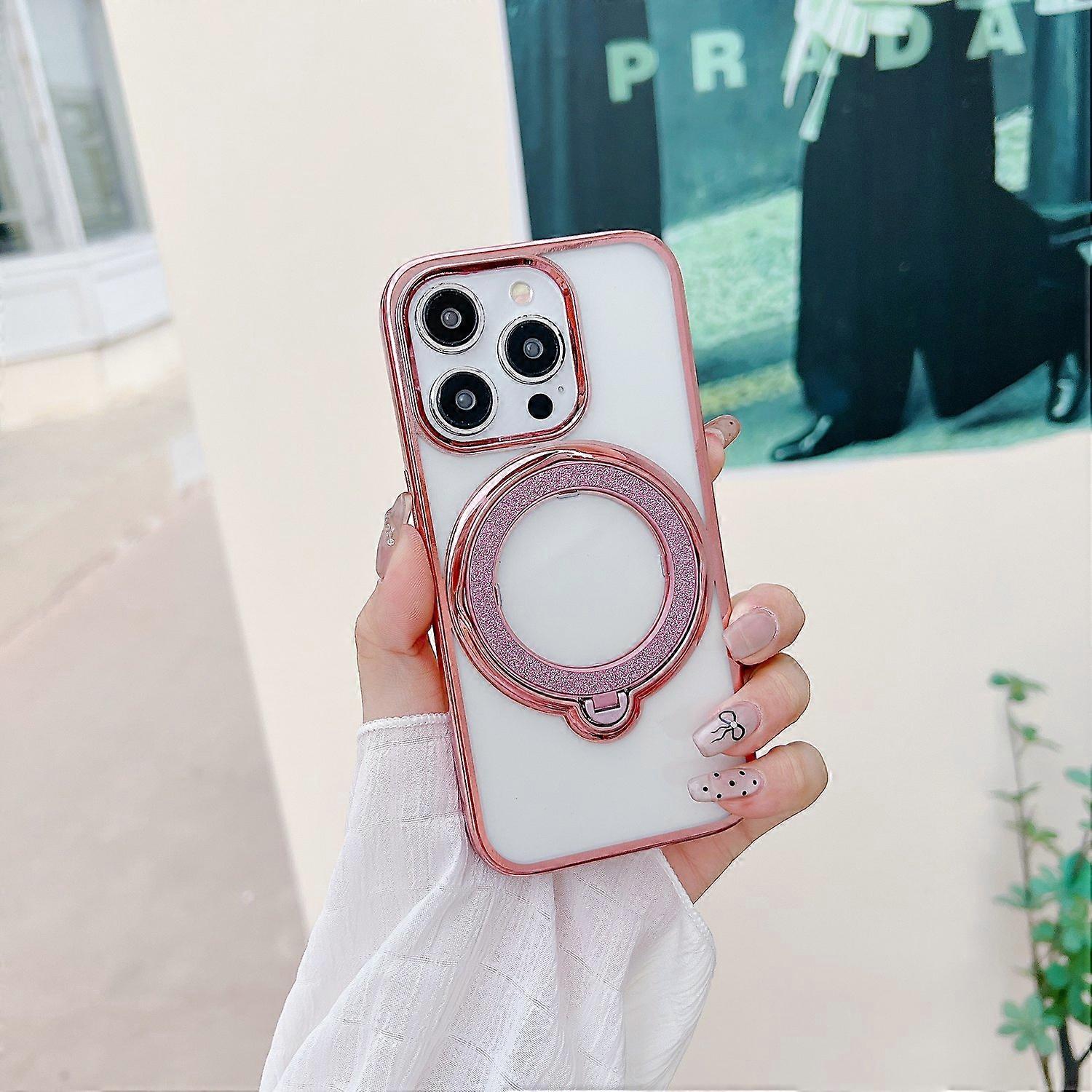 w1d For iPhone 14 Pro Max Case Magnetic Kickstand Holder TPU + PC L1d Phone Cover Electroplating Fra