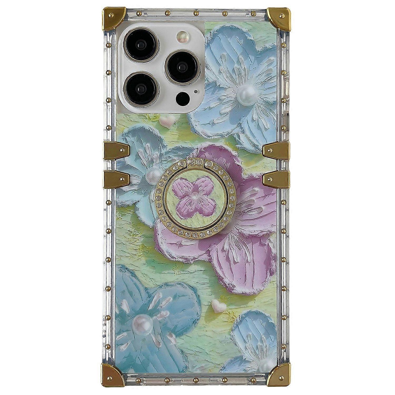 F9v For iPhone 15 Pro Case Stylish Flower Butterfly Pattern Ring n3B Kickstand TPU+PC Phone Cover -