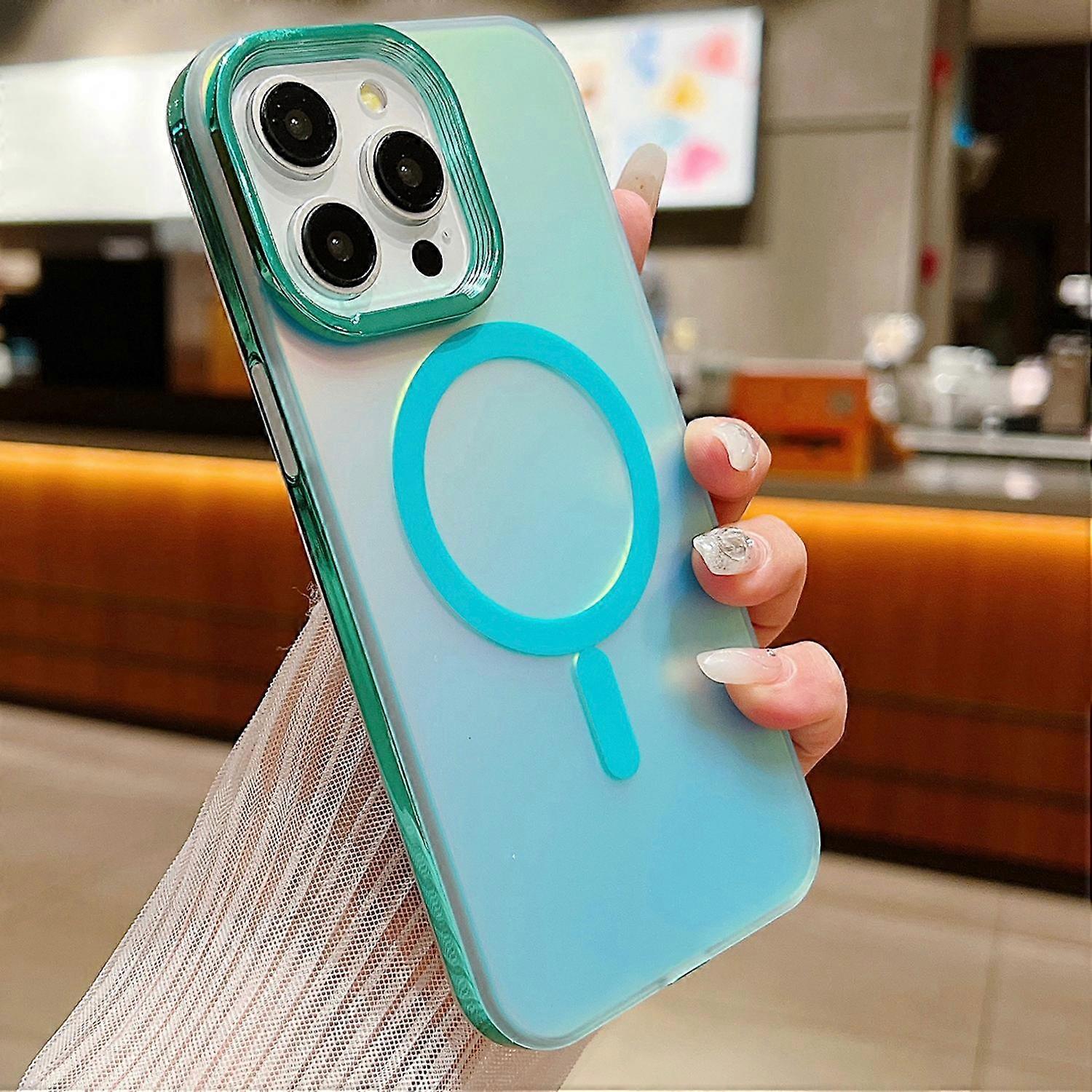 H7u For iPhone 13 Pro Magnetic Case Gradient Aurora TPU+PC Phone p1v Cover - Baby Blue