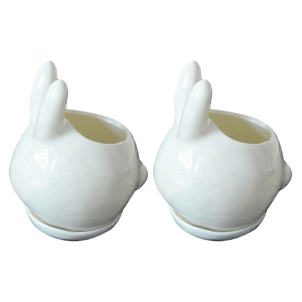 Succulent Plants Pot Rabbit Shape Flower Pot for Decor 2Pcs Ceramic Planter