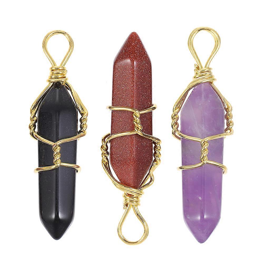 Hanging Energy Stones Pendant Necklace Fengshui Decoration Women Gift Mixed Color Hexagonal Shape 3Pack