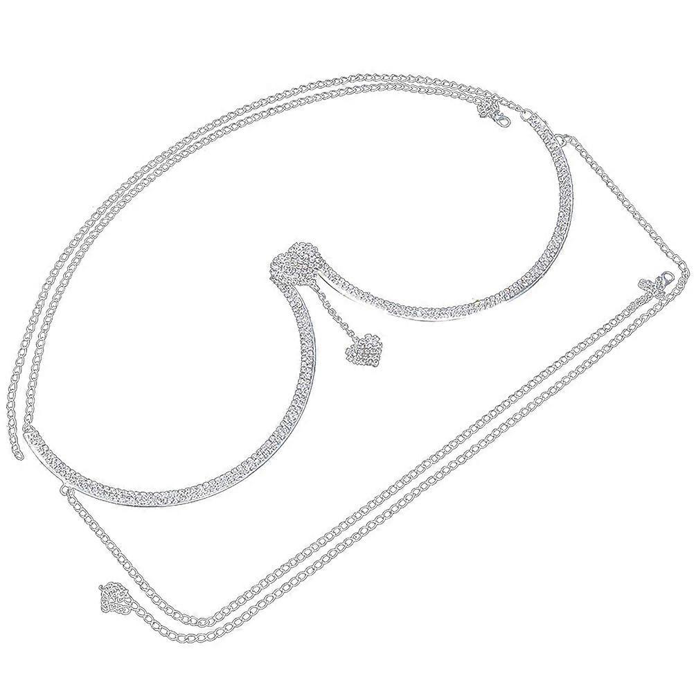 Silver Body Chain Jewelry For Women Heart Shape Sexy Elegant Nightclub Parties 1Set
