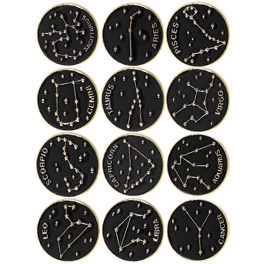 Chest Brooches 12Pcs Black Enamel Pin Set for Decoration Use Alloy Zodiac Pins