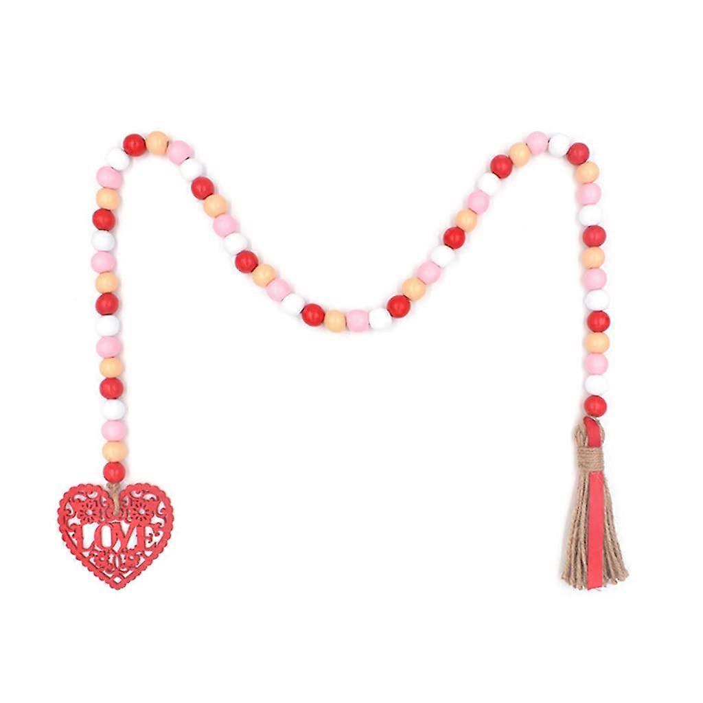 Valentine's Day Heart Wood Bead Garland With Tassel Pendants, Tiered Tray Decor, Prayer Bead Necklace Wall Art