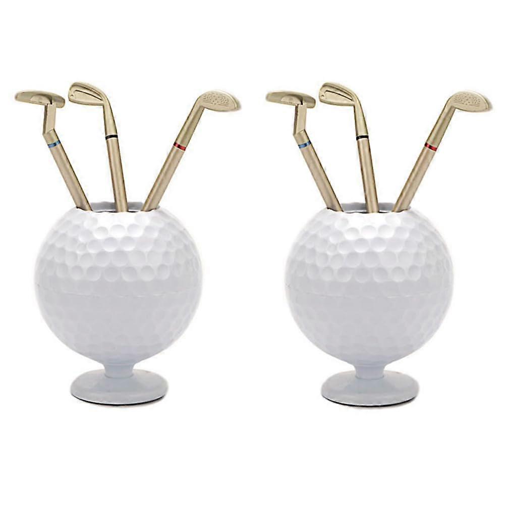 Golf Ball Pen Holder with 3 Golf Ball Pens, Desk Organizer for Golf Lovers, Perfect Gift for Men and Fathers, 2 Pieces