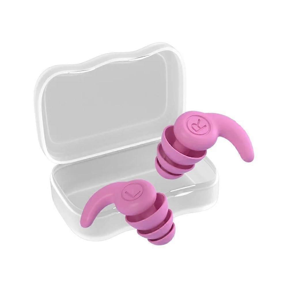 Silicone Ear Plugs For Kids With Storage Case, 3-Layer Noise-Reducing Swimming Ear Plugs, Pink Rose