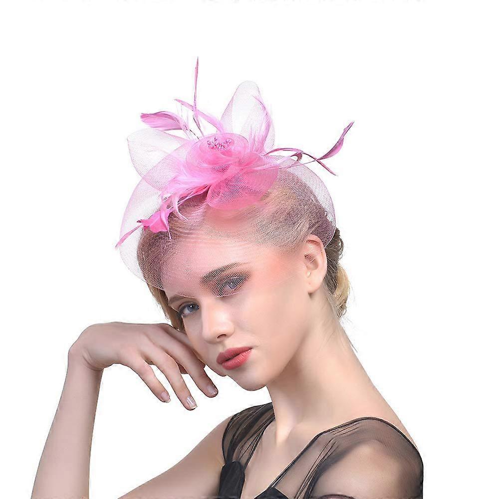 Mesh Hair Accessories Clips for Women, Elegant Pink Looped Net Fascinator with Centre Swirl Design, Bridal Hair Clip