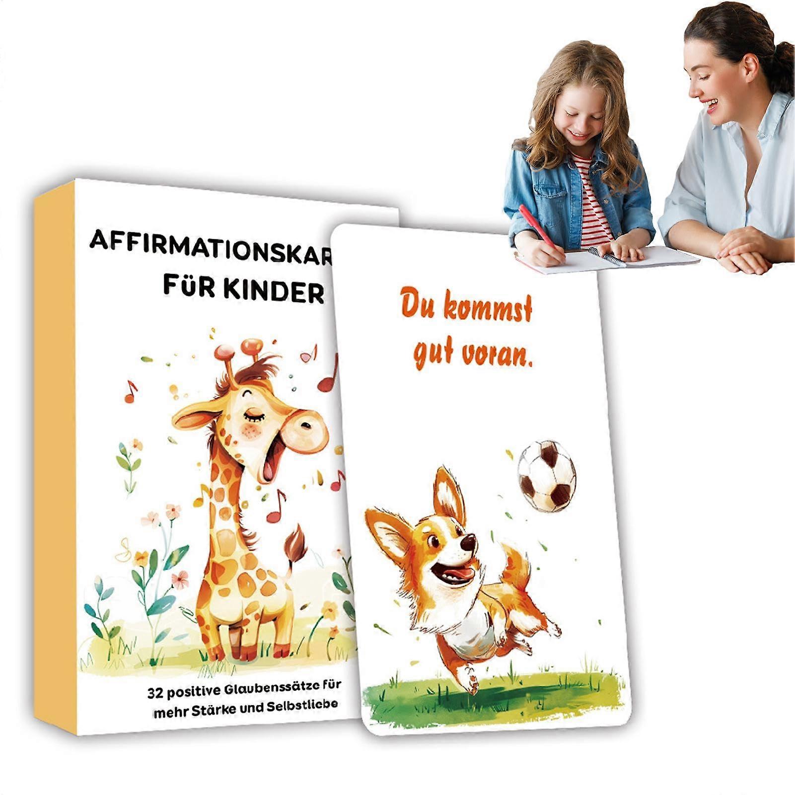 Empowering Cards for Children German Daily Motivation Cards 32-Card Set Animal Theme Empowerment Quotes