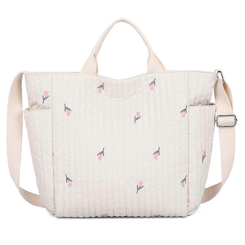 Women Baby Diaper Bag Large Capacity Cartoon Design Adjustable Strap Travel Handbag for Moms, White