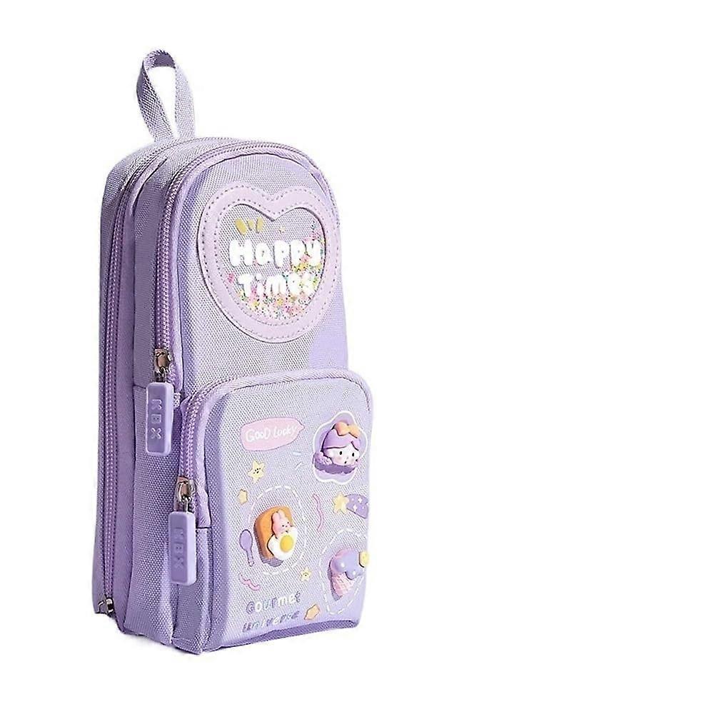 1 x Kawaii Canvas Pencil Case Large Capacity Girls Students Zipper School Stationery Pouch One Size Sweet Cone Girl