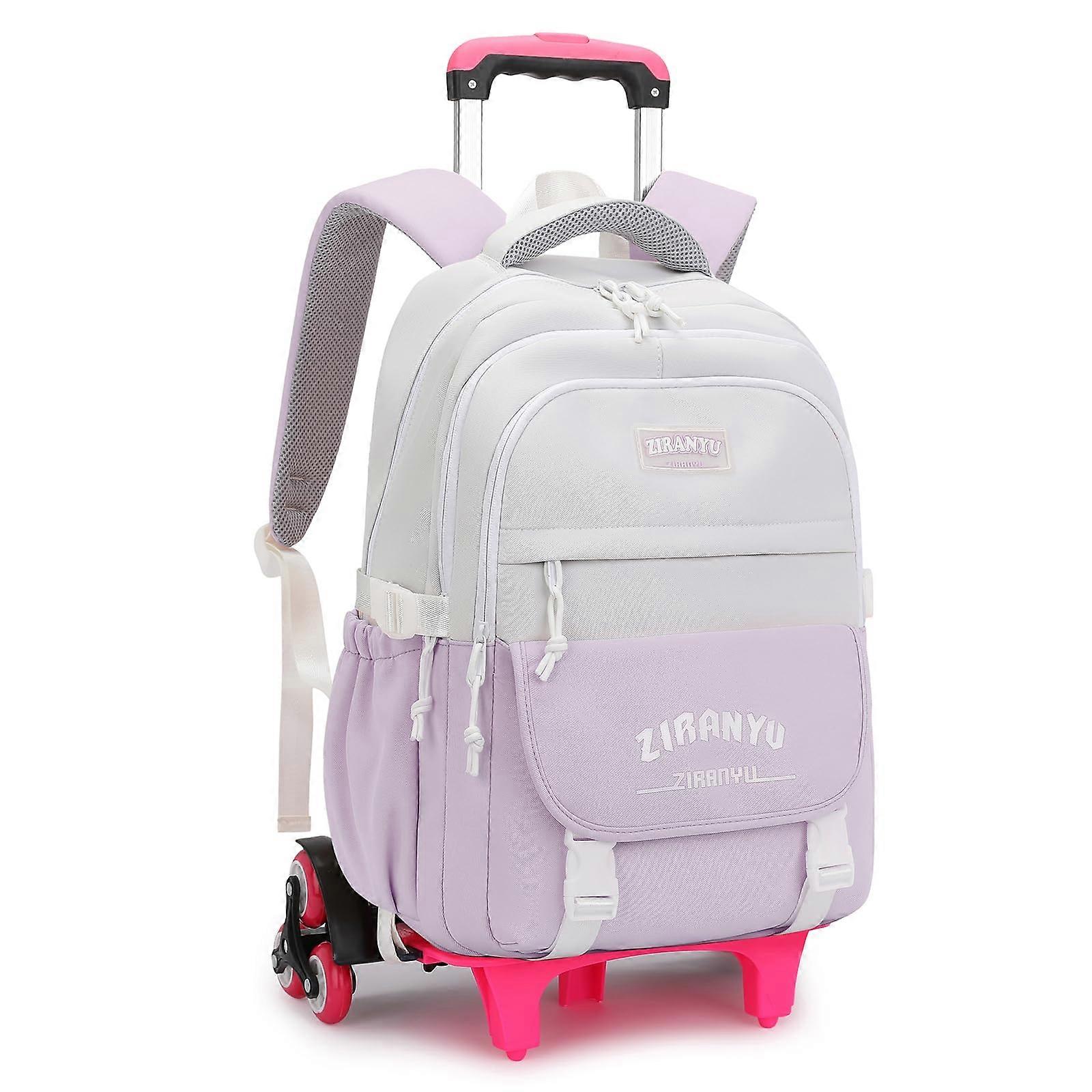 School Bag Trolley For Girls With 6 Wheels, 32L Waterproof Backpack With Wheels, Removable Trolley, 1-5 Class, Purple 1262