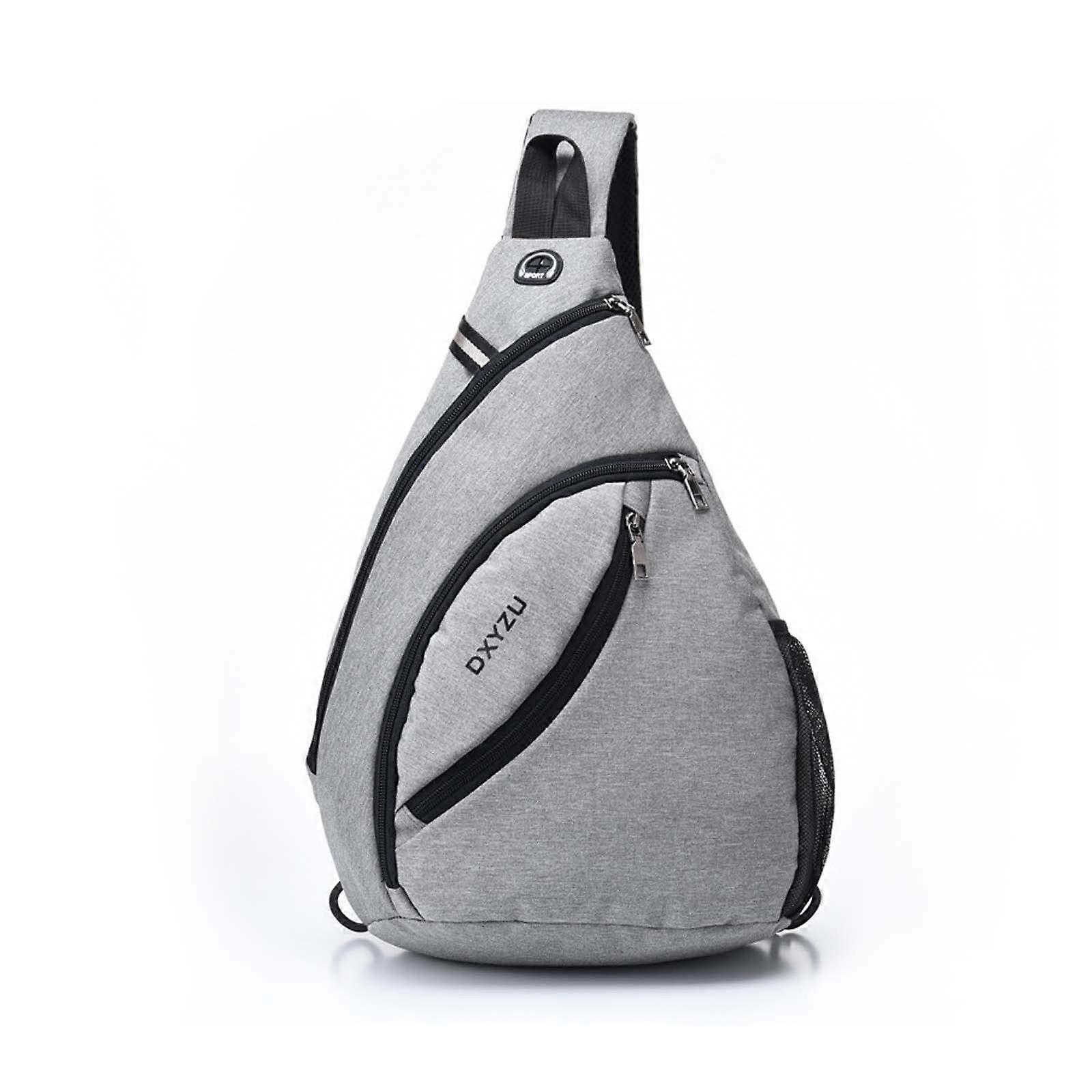 Ultralight Chest Bag Men's Sling Waterproof Shoulder Bag With Headphone Hole Reflective Strips Gray L Hiking Travel