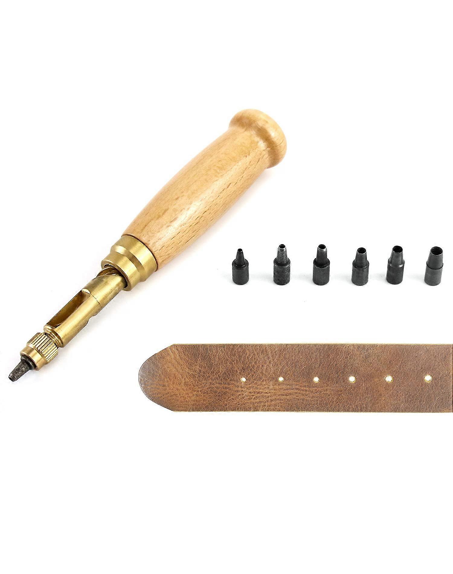 Screw Hole Punch 6-Impact Head Adjustable Leather Hole Punch, 1.5-4mm, For Sewing Leather